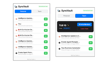 SyncVault — это бесплатное расширение для Chrome, предназначенное для управления AI-разговорами, в частности для ChatGPT и Claude. Оно позволяет пользователям добавлять в закладки, организовывать и делиться своими взаимодействиями без проблем с функциями командного сотрудничества. Система закладок в одно нажатие позволяет пользователям быстро сохранять важные разговоры, пользовательские GPT и проекты Claude, гарантируя, что никакая ценная информация не будет утеряна. Пользователи могут создавать личные коллекции и делиться ими с членами команды через простую систему кодов.